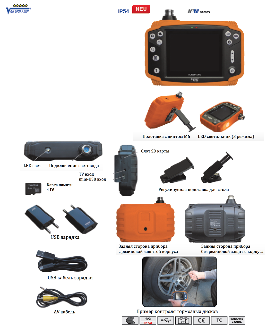 Эндоскоп фото-/видео с водо-пылезащитой IP 54