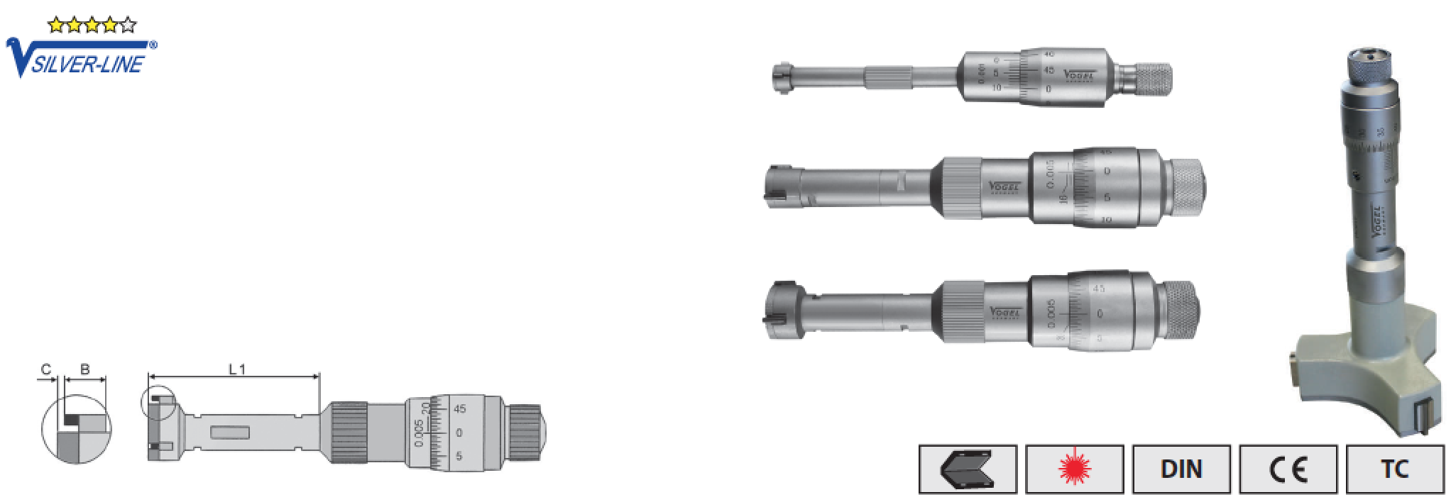 Нутромеры 6-8 / 87-100 микрометрические по 3-м точкам Vogel