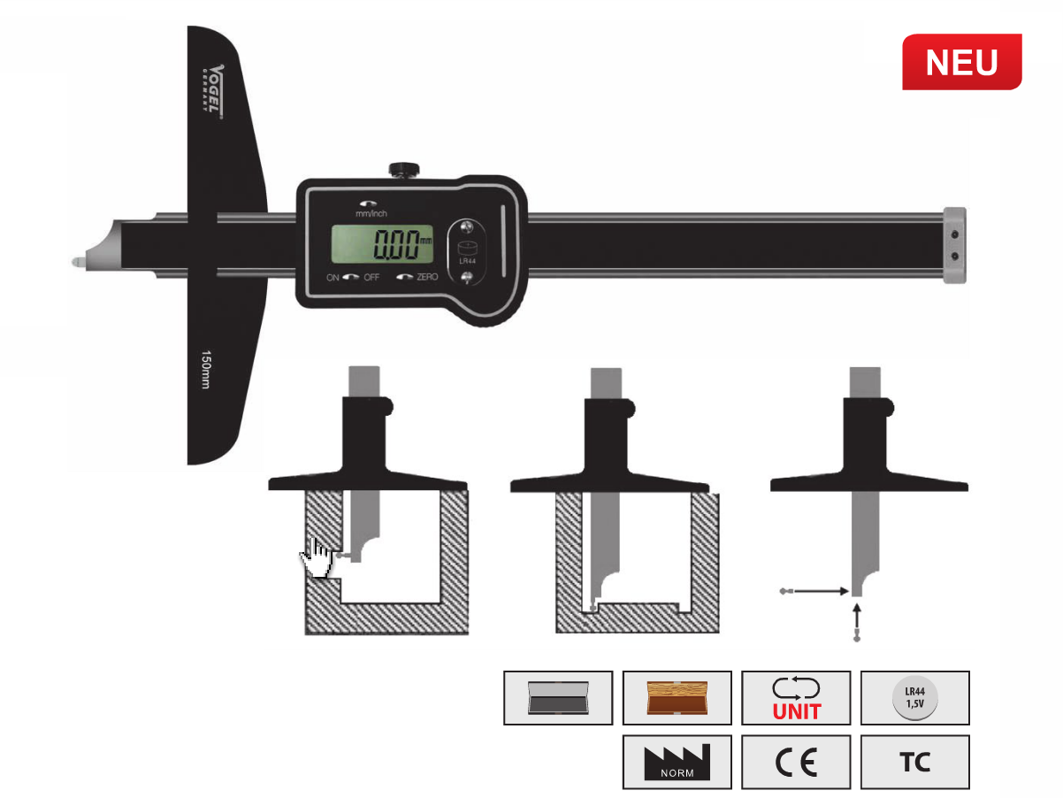 Штангенглубиномер Vogel цифровой со сменными колками с резьбой M2,5