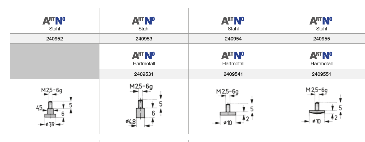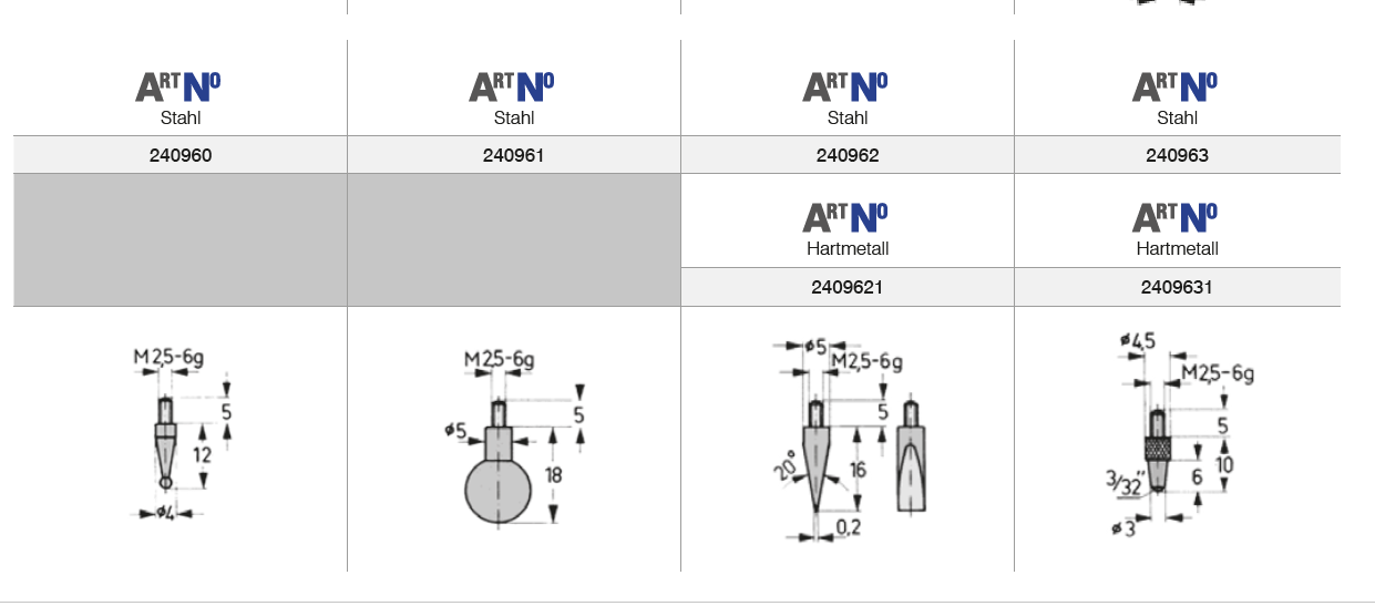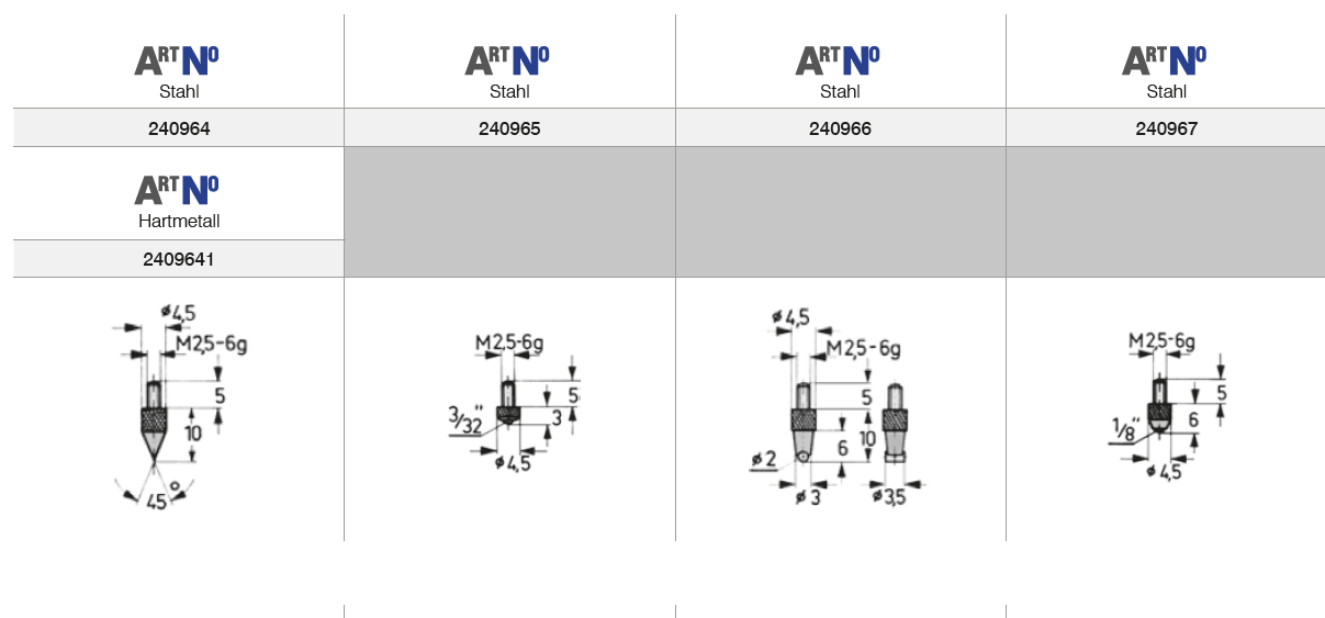 Наконечники различных типов для цифровых и аналоговых индикаторов