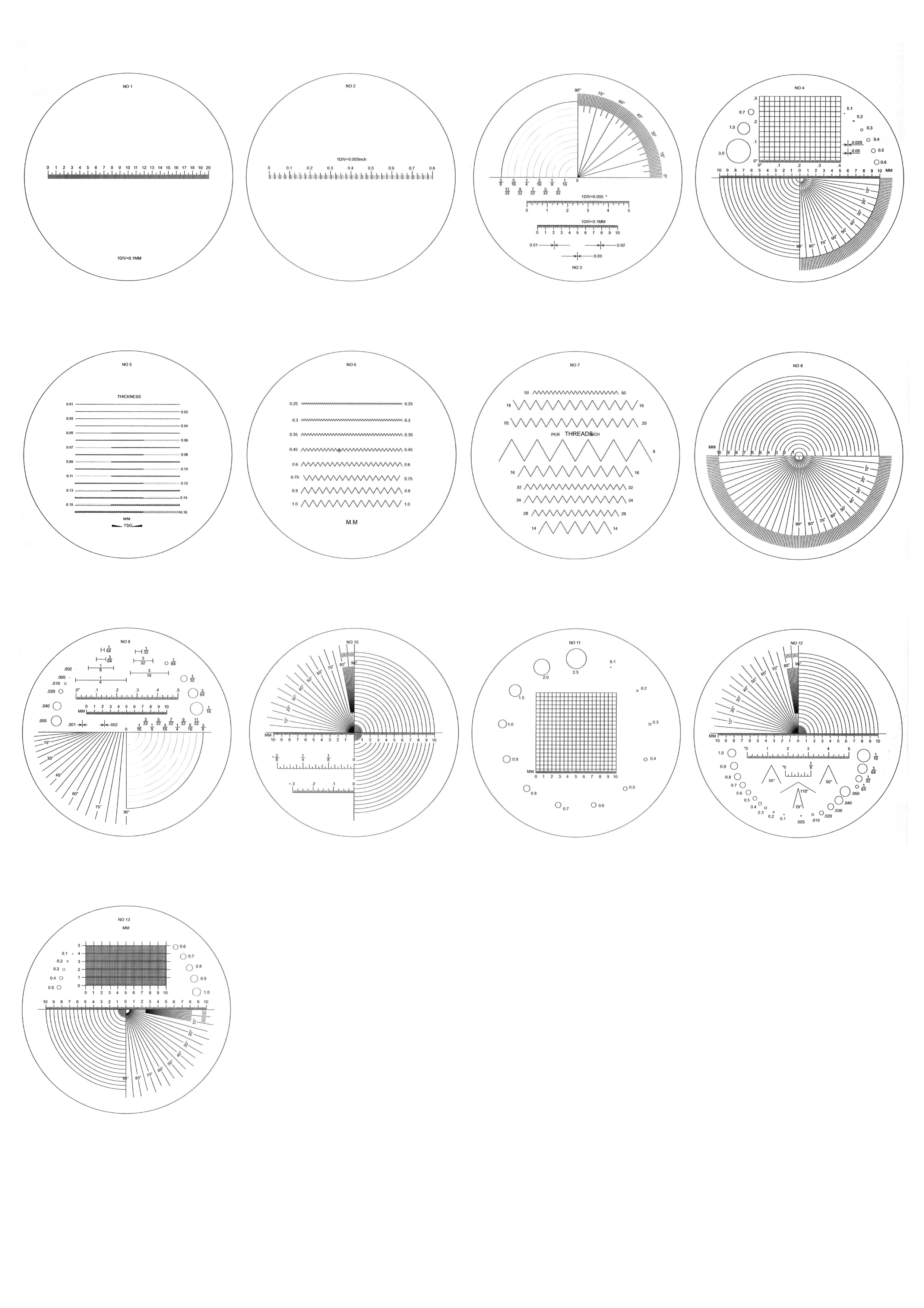 Различные измерительные шкалы тип 1 - тип 13 :