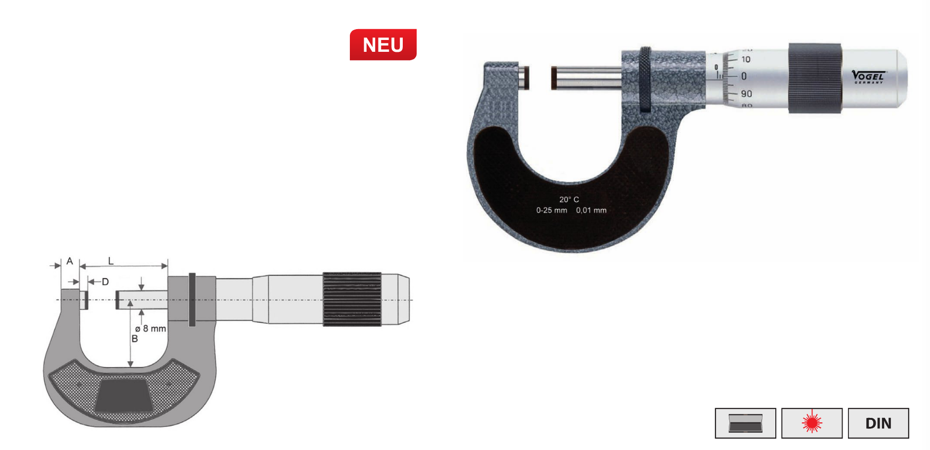 Микрометры МК 25 - 150 со штоком ∅ 8 мм Vogel