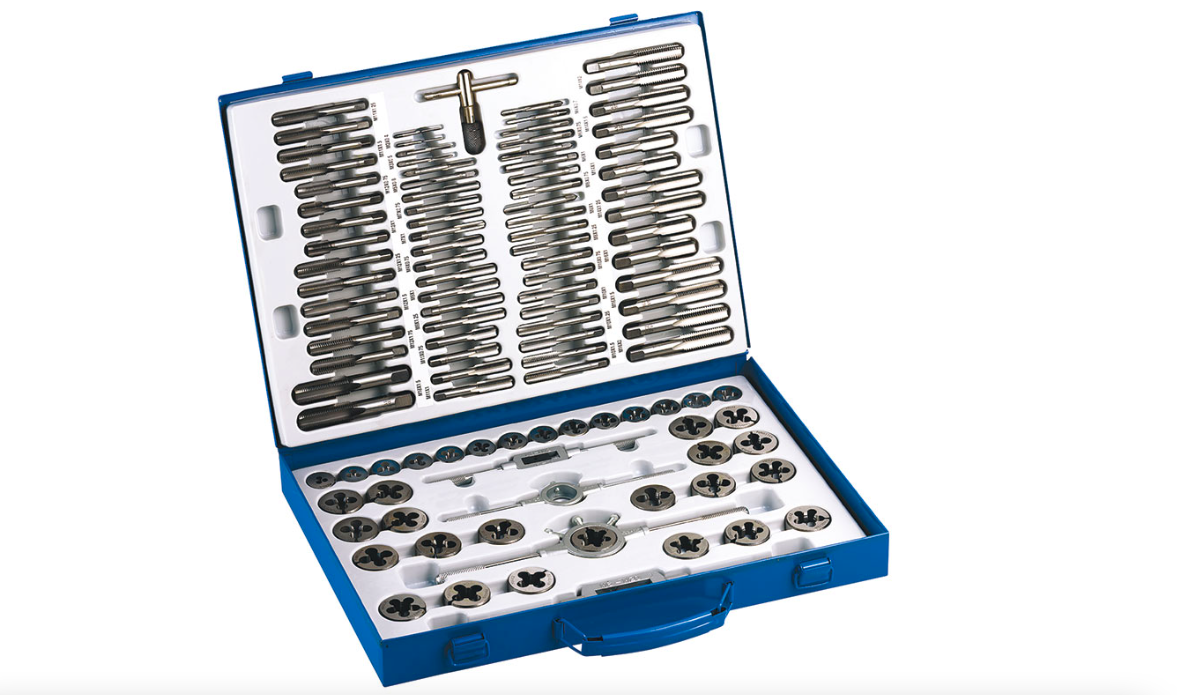 Набор ручных комплектных метчиков из 2-х штук, плашек и воротков, всего 110 предметов