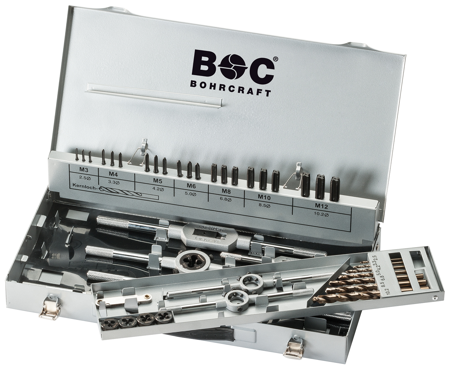 Набор М3 - М12 метчиков, плашек, сверел 44 шт HSSE Bohrcraft