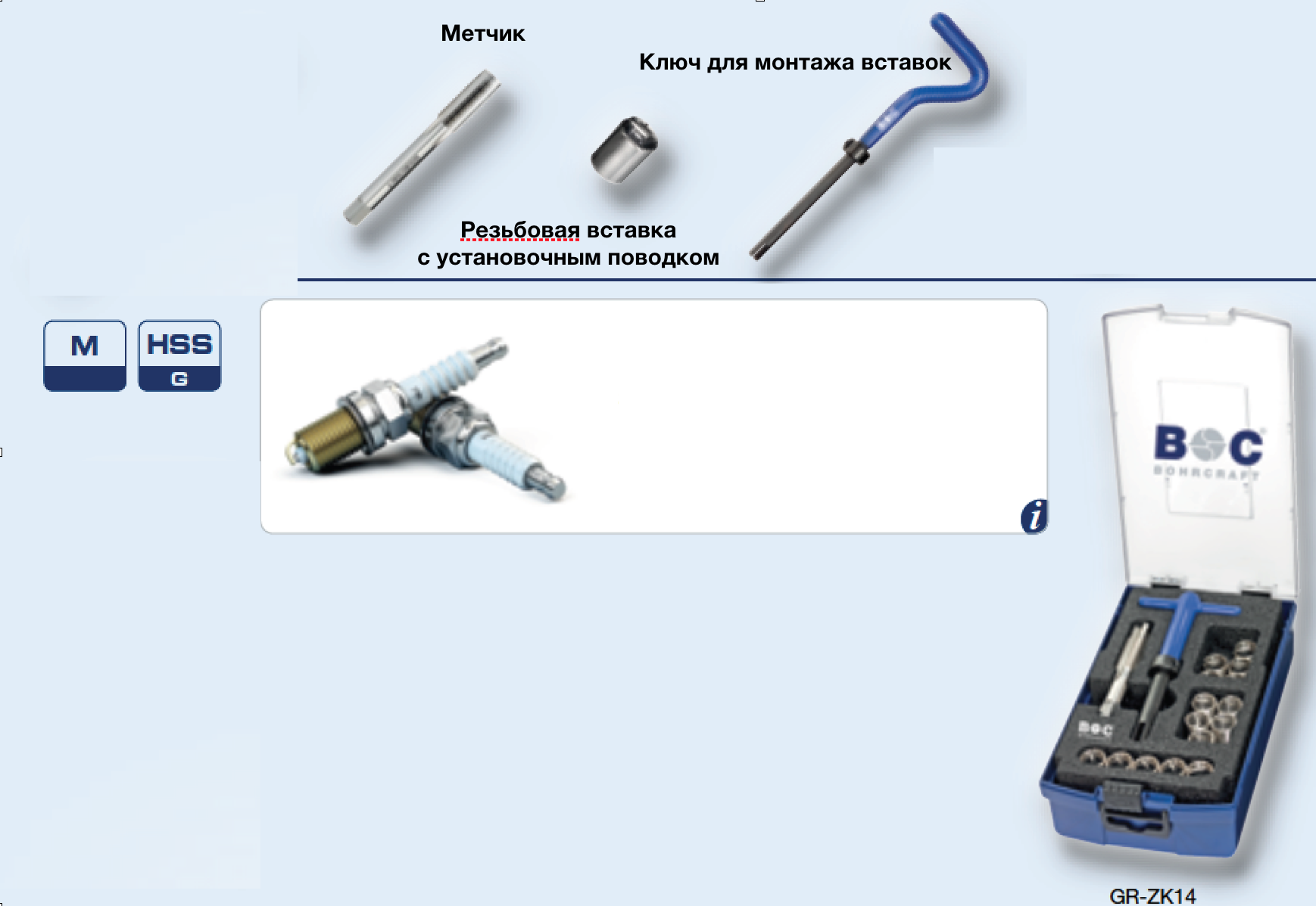 Набор инструментов и вставок для ремонта свечной резьбы от МF14x1,25