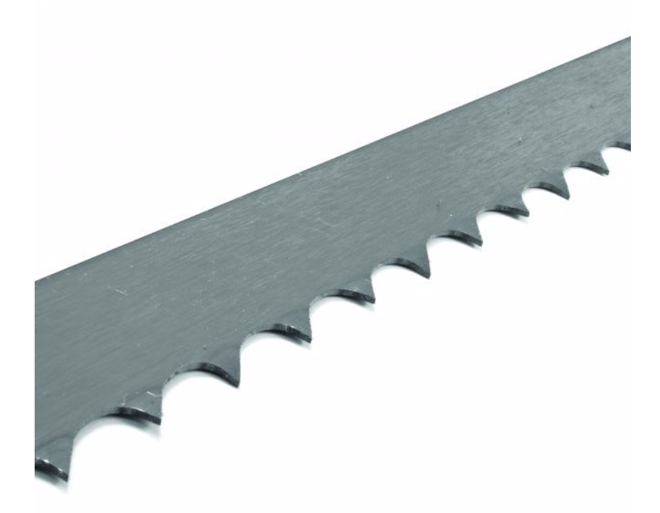 Гибкое ленточнопильное полотно, произведенное из цельной полосы легированной хромом углеродистой стали и твердостью зуба около 65 HRc.